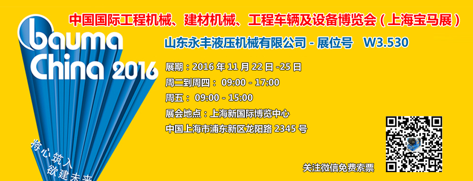 山东永丰液压机械有限公司将于今年11月参加上海bauma China 2016(上海宝马展)展会,欢迎广大新老朋友届时莅临指导,免费索票。